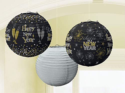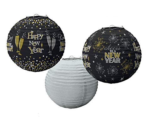 Queste lanterne di forma rotonda in carta con 2 lanterne nere di nuovo anno e una lanterna bianca che sicuramente porterà un perfetto conto alla rovescia per il nuovo anno.