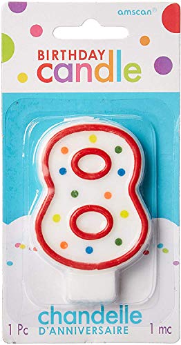 Amscan 9900782 Candelina di compleanno numero 8, a pois, 7,5 cm