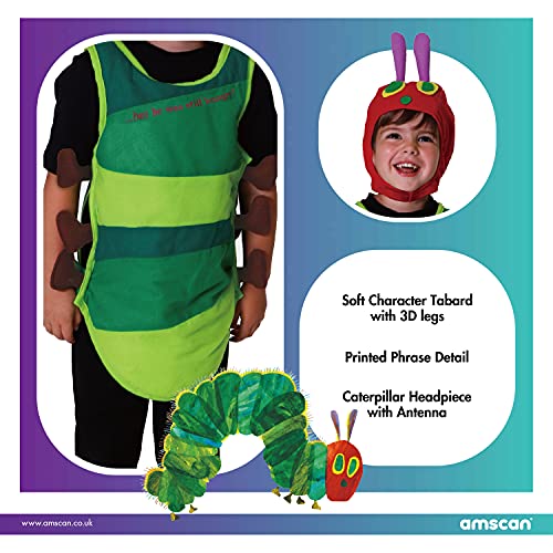 Amscan 9902973 - Costume unisex con scritta The Very Hungry Caterpillar, con scritta Tabard e cappello, 6-8 anni, colore: Verde