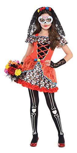 Amscan Costume Senorita Cranio Colorato, Rosso, 8/10 anni, 847256-55
