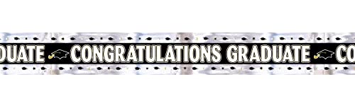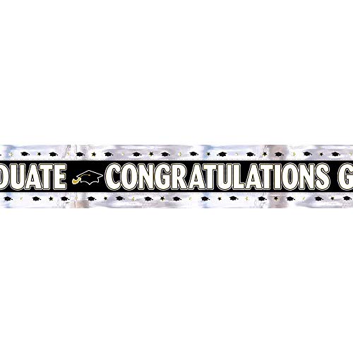 Amscan - Festone in Alluminio, per Laurea, 2,7 m, Colore: Nero/Bianco/Argento/Oro (Lingua Inglese)