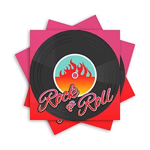 Amscan Nifty 50 da festa a tema "Rock & Roll" vinyl record tovaglioli (16 pezzi), multicolori, 12,7 x 12,7 cm