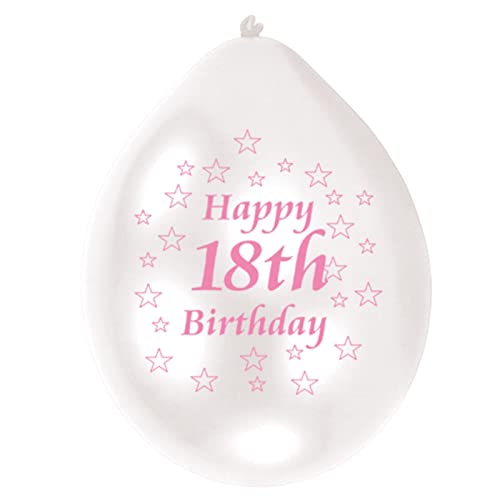 Amscan - Palloncino da 22,8 cm in Lattice, Motivo Happy 18th Birthday, Confezione da 10, Colore Rosa e Bianco
