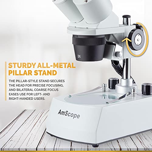 AmScope - 20X-80X Microscopio Stereo LED Senza Fili, Cordless Portable Stereo Microscope for Students