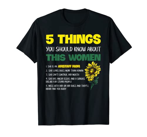 Design a zampa di cane di girasole con citazione: 5 cose che dovresti sapere su questa donna lei è una mamma Amstaff.