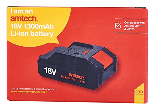 Amtech v6910 1300mAh batteria al Litio per V6515 E V6520, 18 Volt, Trasparente