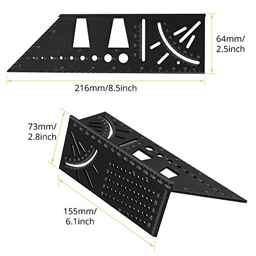 3D Righello Angolare: Realizzato In Lega Di Alluminio, Resistente All'Usura, Antiossidante, Durevole e Di Alta Precisione. Scale Metriche Chiare, Precise e Di Facile Lettura. Forare Le Dimensioni Con Il Centrapunte. Può Essere Utilizzato Come Indicatore Di Marcatura Per Linee Parallele, Misura Di 45 e 90 Gradi.
