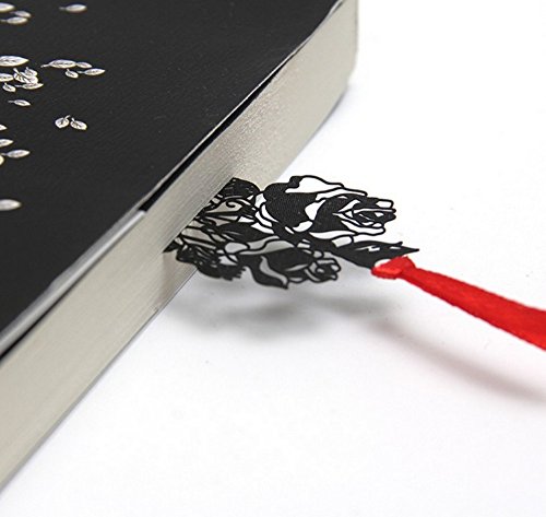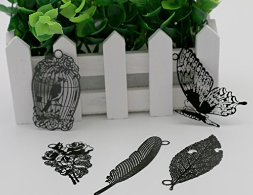 Amupper, segnalibro a tema natura, con fiocco rosso e busta, in metallo di colore nero, confezione da 5 pezzi