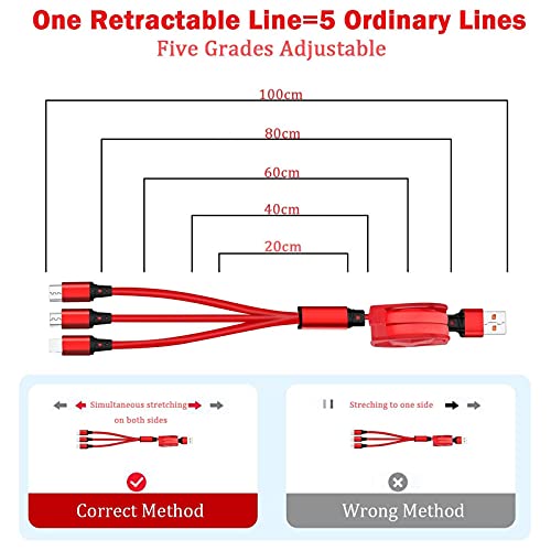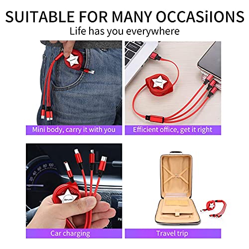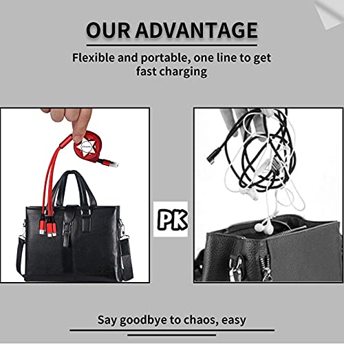 Amuvec Cavo USB Multiplo 3 in 1, 2Pezzi Retrattile Multi Cavo di Ricarica Rapida Cavetto USB Type C Micro USB, Cavo Multi USB per Phone Android Samsung Galaxy S10 S9 S8 Huawei Xiaomi Tablet LG- Red