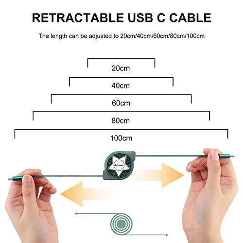 Amuvec Cavo USB C Retrattile Cavo Tipo C PD 60W Carica Rapida Cavetto Compatible con Mac Pro, Pad Air/Mini, Samsung Galaxy S22 S21 S20 S10 A52, Huawei P40 P30, OnePlus, Xiaomi, Sony, Tablet e Altro-1M