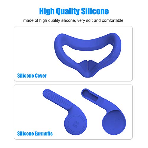 AMVR Maschera e copriorecchie in silicone VR per cuffie Quest 2, resistenti al sudore, impermeabili, repellenti alla sporcizia, imbottite e che migliorano il suono delle cuffie (blu, 1 set)