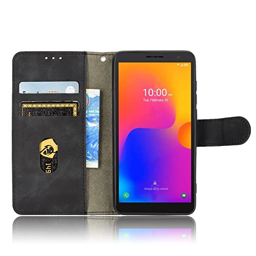 AMWEI Leather Folio Cover per TCL 303 / Alcatel 1B 2022, Custodia in Pelle PU Magnetica Libro Flip Portafoglio con [Funzione Stand]. Nero