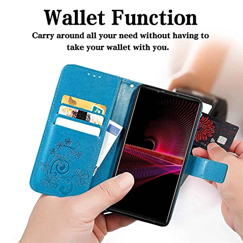 AMWEI Leather Folio Cover per Motorola Moto E32, Trifoglio Fortunato Custodia in Pelle PU Magnetica Libro Flip Portafoglio Case con [Funzione Stand]. Blu