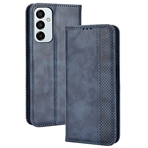 AMWEI Leather Folio Cover per Samsung Galaxy M13 4G, Custodia in Pelle PU Magnetica Libro Flip Portafoglio con [Funzione Stand]. Blu