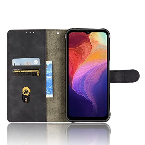 AMWEI Leather Folio Cover per Ulefone Power Armor 14/14 PRO, Custodia in Pelle PU Magnetica Libro Flip Portafoglio con [Funzione Stand]. Nero