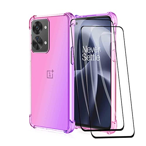 AMWEI TPU Sfumato Cover per OnePlus Nord 2T Case + 2 Vetro Temperato, Custodia in Morbida Silicone TPU Anti-Graffio Antiurto Protettiva Shell Bumper (Rosa Viola)