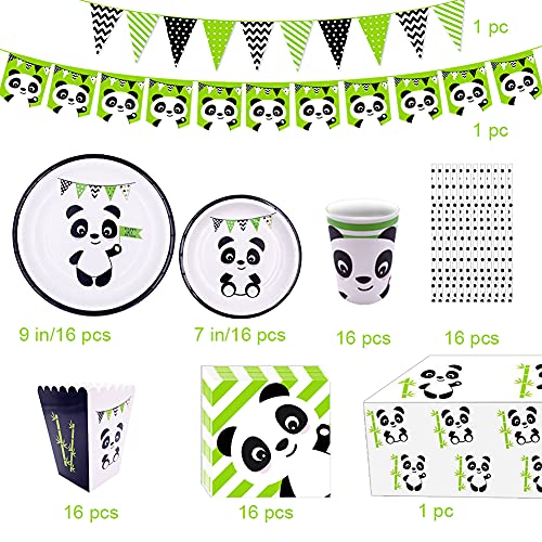 Amycute Set di Decorazioni per Feste Panda Compleanno 16 Ospiti, Panda Piatti, Bicchieri, Tovaglioli e Tovaglia, Baby Shower Ragazzi Ragazze Compleanno Party Kit