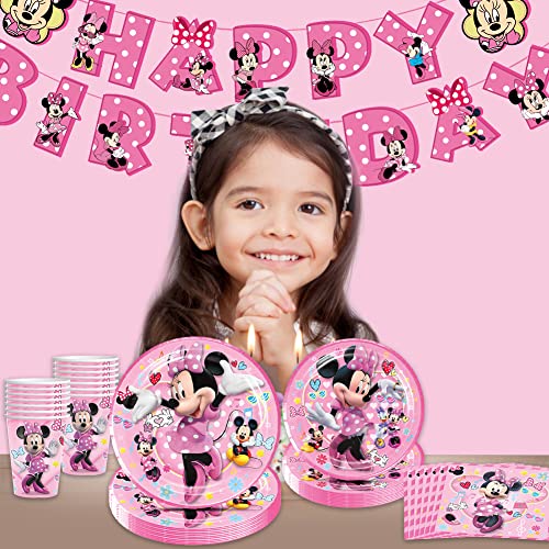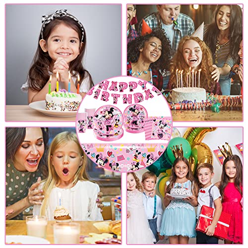 Amycute 102 Pezzi Minnie Piatti Compleanno, Set Compleanno Bambina Piatti Carta Minnie Tovaglioli Tovaglia Stoviglie per Feste Decorazioni per Festa Compleanno Bambini