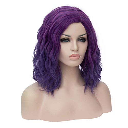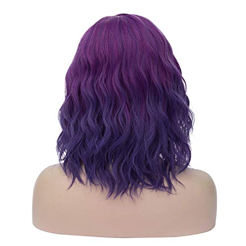 AMYHOME 14''/36cm Parrucche Da Donna Mossi Corto Capelli Sintetici Naturale Festa Sintetico Parrucca Partito Veri Resistente al Calore Cosplay Club Halloween, Viola Scuro