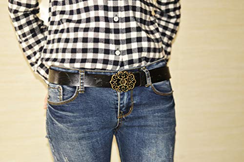 AmyKer donna Cintura in vera pelle per pantaloni jeans vestito con fibbia floreale, rosso, bianco, marrone, nero (nero, 105 cm (vita: 20"-33"))