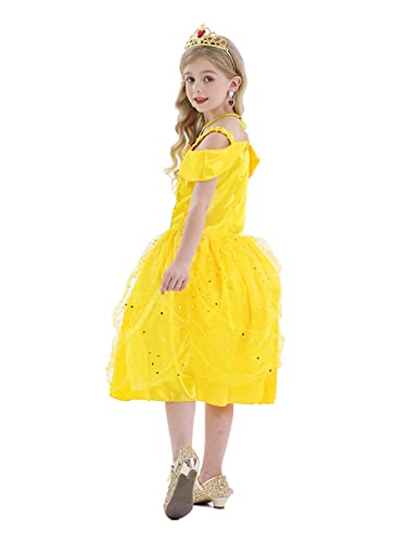 AmzBarley Bambina Principessa Belle Vestito Festa Cosplay Costume Ragazza Compleanno Partito Carnevale Halloween Abito Vestiti Abiti Amarillo 5-6 Anni 120