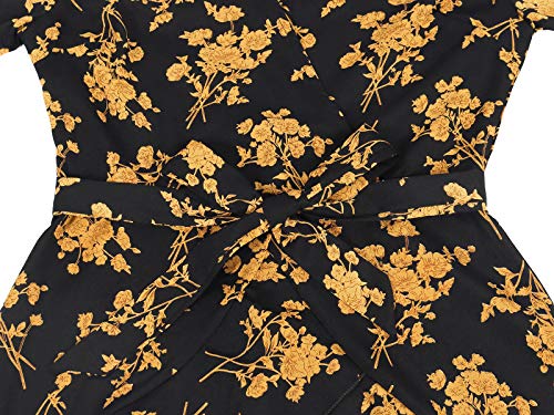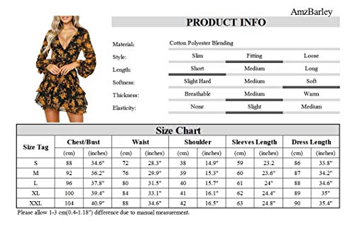 AmzBarley Donna Floreale Vestito da Sole Estate Signora Fiori Vintage Vestiti Bohémien Pastorale retrò Boho Abiti Estivo Manica Lunga
