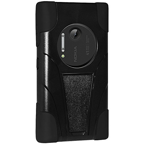 Amzer - Custodia Ibrida a Doppio Strato con cavalletto per Nokia Lumia 1020, Colore: Nero