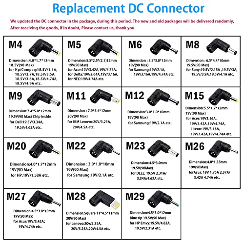 [Tensione di regolazione intelligente:] Il caricabatterie per laptop CA si adatta alla maggior parte dei laptop. Plug and play, facile da usare. Adattatore di alimentazione per notebook compatibile da 90W 75W 70W 65W 60W 45W 40W 36W. (NON più di 90W max.)
