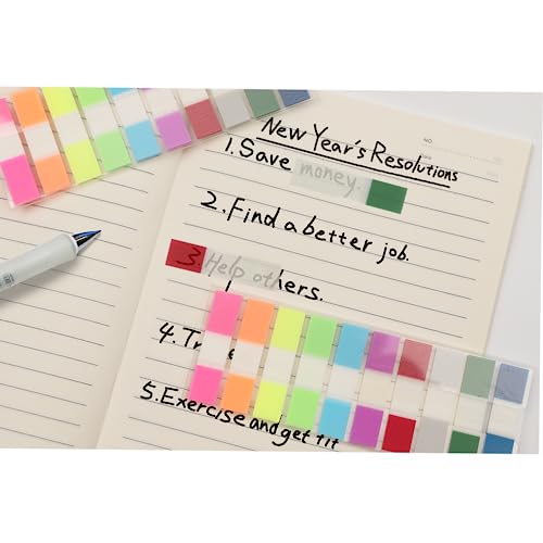 AMZSKU Sticky Notes,Moinkerin 1000 foglietti adesivi trasparenti in PET multicolore per segnalibri, studio, ufficio, pianificatore scolastico