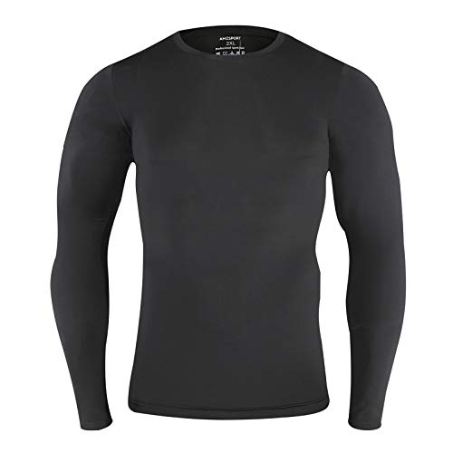 AMZSPORT Camicia a Compressione da Uomo T-Shirt Sportiva Fitness a Manica Lunga Raffreddare Strato di Base a Secco - Nero S