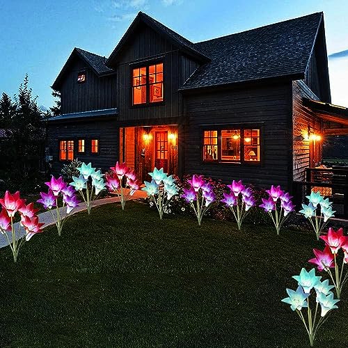 Amzxart - Luci solari per esterni, confezione da 4 pezzi, 16 fiori di giglio impermeabili a LED a energia solare, luci da giardino, multicolore che cambiano per vialetto, patio, cortile, passerella