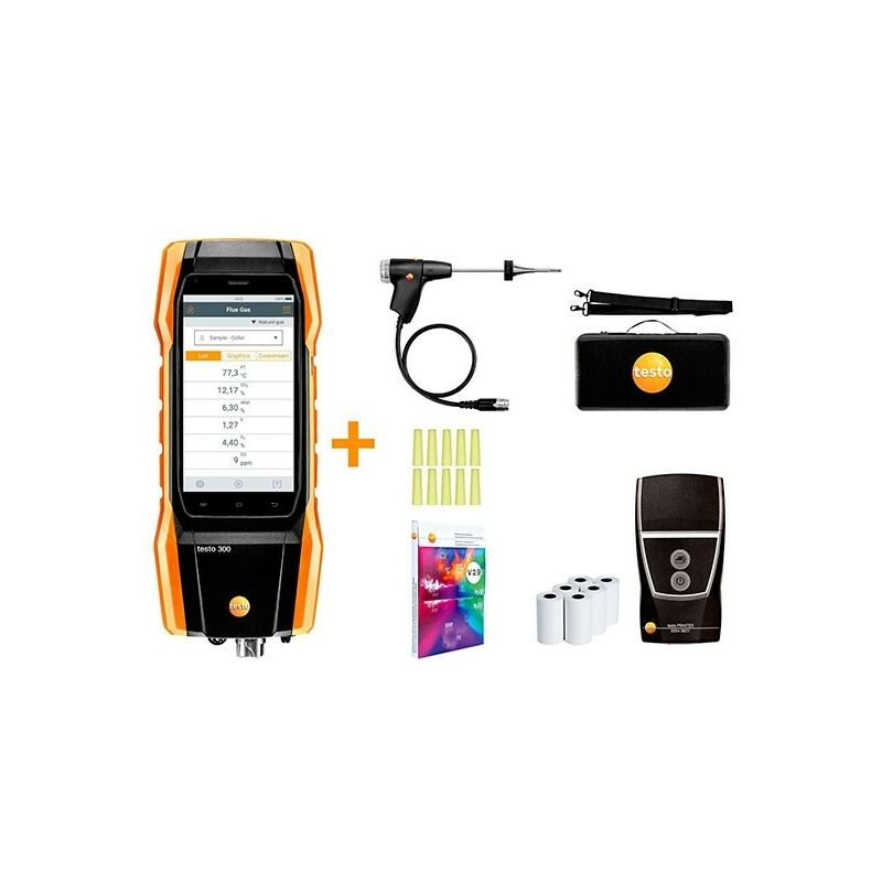 Analizzatore di Combustione Testo 300 Kit 1 con NOx - 0564300274 Con questo kit sarai sempre pronto ad affrontare le principali misure sugli impianti di riscaldamento: l'analizzatore di combustione omologato dal TÜV testo 300 viene fornito con sensore O2 e sensore CO fino a 4.000 ppm, sonda compatta per gas combusti, stampante testo Bluetooth, borsa portastrumento e altri pratici accessori. Dettagli sui componenti del kit - testo 300 - analizzatore di combustione (O2, CO fino a 4.000 ppm, NO integrabile successivamente) I menu di misura intuitivi e il display Smart-Touch a risposta rapida garantiscono una facilità d'uso mai vista prima, proprio come il tuo smartphone Con sensore O2 e sensore CO fino a 4.000 ppm - Alimentatore USB con cavo - Sonda compatta per analizzatori fumi - lunghezza 180 mm, Ø 6 mm, Tmax. 500°C Un unico tubo collegabili allo strumento tramite un robusto attacco a baionetta per temperatura fumi e gas combusti Il filtro integrato nell'impugnatura, sostituibile