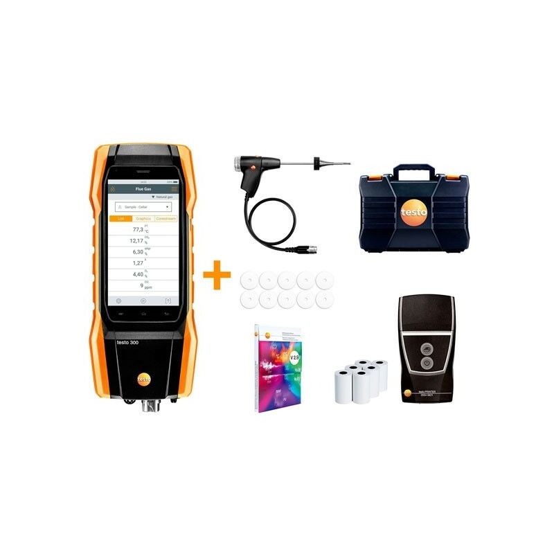 Analizzatore di Combustione Testo 300 LongLife con NOx Kit 2 - 0564300484 Usa anche tu l'analizzatore di combustione con sensori Longlife per svolgere più volte al giorno lavori di installazione e manutenzione su impianti di riscaldamento. L'analizzatore di combustione omologato dal TÜV testo 300 Longlife viene fornito con sensore O2 e sensore CO compensato in H2 fino a 30.000 ppm, NO/NOx, sonda modulare per gas combusti omologata TÜV, stampante testo Bluetooth, valigetta e altri pratici accessori. Dettagli sui componenti del kit - testo 300 Longlife - analizzatore di combustione (O2, CO-H2 fino a 30.000 ppm, NO/NOx) I menu di misura intuitivi e il display Smart-Touch a risposta rapida garantiscono una facilità d'uso mai vista prima, proprio come il tuo smartphone Adatto per impianti a legna e pellets (sensore CO-H2 fino a 30.000ppm) - Alimentatore USB con cavo - Sonda con puntale sostituibile per analizzatori fumi - lunghezza puntale 180 mm Facile sostituzione del tubo della sonda