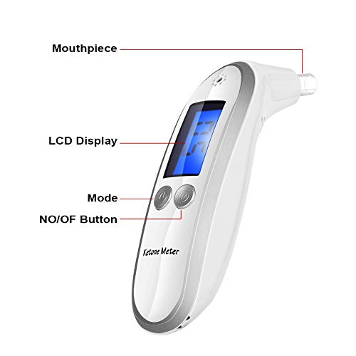 Analizzatore di respiro chetonico professionale, precisione di livello digitale, misuratore di respiro chetonico, tracciamento dello stato della chetosi, con 10 bocchini (bianco)