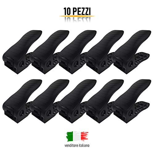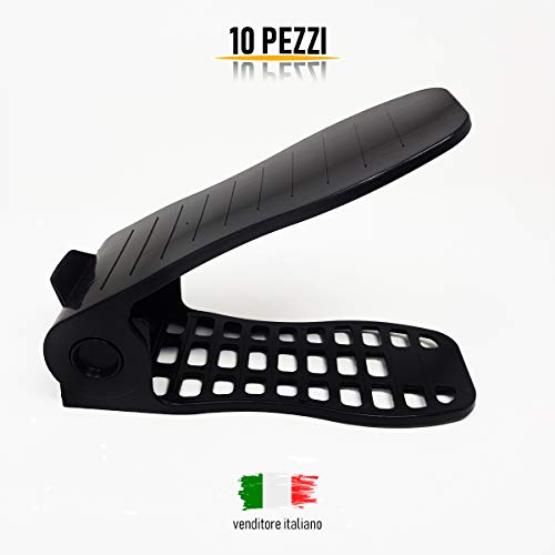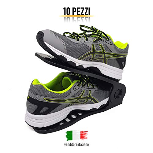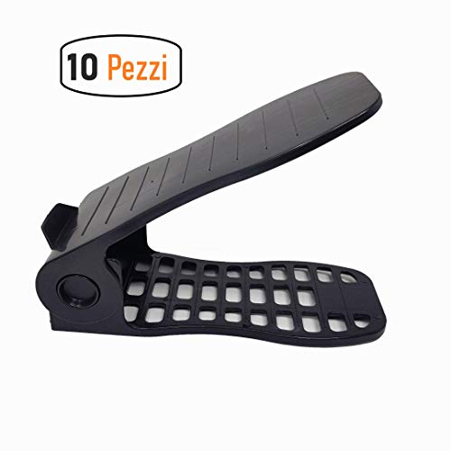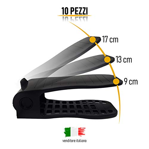 Anape Portascarpe salvaspazio Regolabile 10 Pezzi Colore Nero in Plastica Resistente, Leggera e Regolabile in 4 Diverse Posizioni scarpiera salvaspazio Nuovo Articolo Portascarpe organizer armadio
