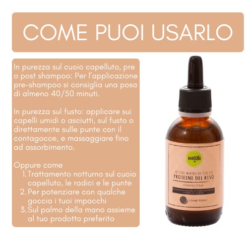 Anarkhia Bio - Active Water di Cocco + Proteine del Riso - Siero Attivo per Capelli - Aumenta la Capacità di Trattenere l'acqua. Facilita lo Styling.