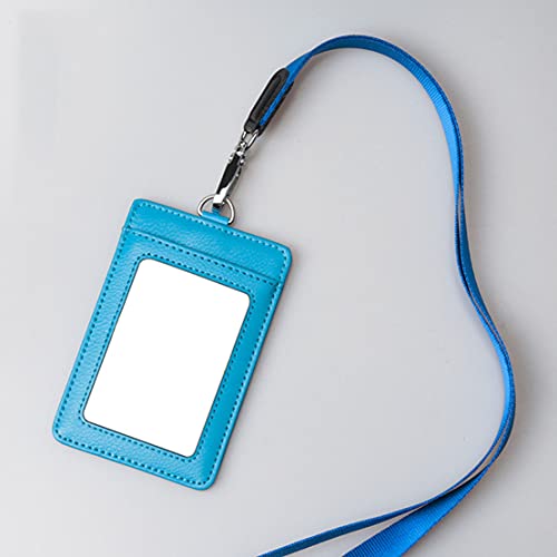 Anawakia Porta badge verticale, in ecopelle, con cordino, per business e imprese, colore azzurro