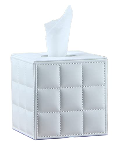 Anawakia Porta-fazzoletti quadrato in pelle PU per fazzoletti, porta fazzoletti, porta fazzoletti (bianco)