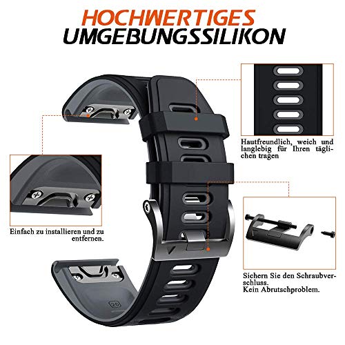 ANBEST Cinturino in Silicone Compatibile con Fenix 6X/Fenix 5X/Fenix 6X Pro/5X Plus, Cinturino Sportivo vestibilità Rapida per Fenix 3/Fenix 3 HR/D2 Charlie/Tactix Delta, Nero/Grigio