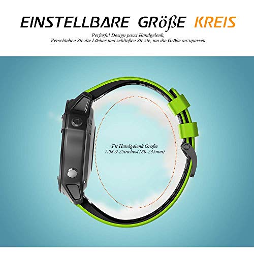 ANBEST Cinturino in Silicone Compatibile con Fenix 6X/Fenix 5X/Fenix 6X Pro/5X Plus, Cinturino Sportivo vestibilità Rapida per Fenix 3/Fenix 3 HR/D2 Charlie/Tactix Delta, Verde/Nero