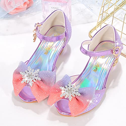 ANBIWANGLUO Scarpe Principessa Bambina Scarpe Paillettes Tacco Bambini Sandali Partito da Ragazze 37 EU(Etichetta 38,Viola)