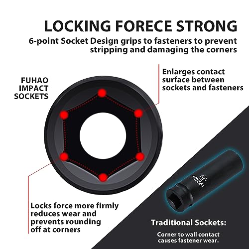 【Chiara marcatura delle dimensioni】 Ogni presa a impatto profondo ha una marcatura chiara per una rapida selezione delle dimensioni, anche in garage e negozi