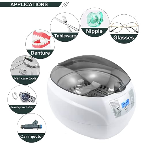 ★ MULTIUSO: Il pulitore a ultrasuoni può essere utilizzato come detergente per gioielli, detergente per vetri, detergente per protesi, detergente per occhiali, detergente per orologi, detergente per monete, detergente per strumenti di laboratorio e altro ancora. Prefetto per negozio di occhiali, gioielleria, orologi e negozio di orologi, cliniche dentali, pulitore per protesi dentarie, laboratorio elettronico di laboratorio, ufficio e uso domestico.