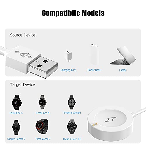 Ancable - Cavo di ricarica per Fossil Gen 5, confezione da 1 pezzi, 1 m, compatibile con Fossil Gen 4, Gen 5, Emporio Armani, Skagen falster 2, Misfit Vapor 2, Diesel Guard 2.5