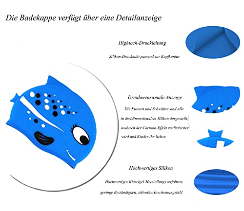 Ancaiqi Cuffia Da Nuoto Bambini,Cuffia Piscina Bambino in Silicone Antiscivolo Impermeabile Pesce e Squalo Tappi per le Orecchie a Clip per il Naso per Giovani Ragazzi Ragazze(Silikon-Gelb)