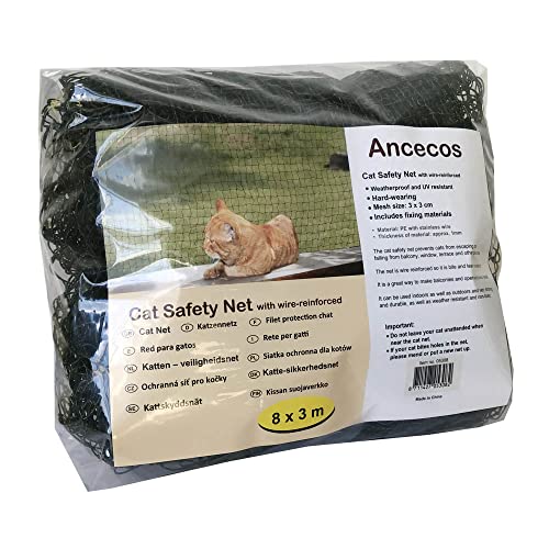 Ancecos Rete per Gatti, Rete per Gatti Balcone, con Filo Rinforzato, Resistente ai morsi, 8 x 3 m