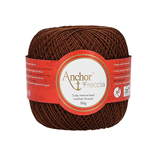 Anchor Freccia - Gomitolo di filo da uncinetto, 100% cotone, spessore 12, Cotone, 00359 marrone, marrone