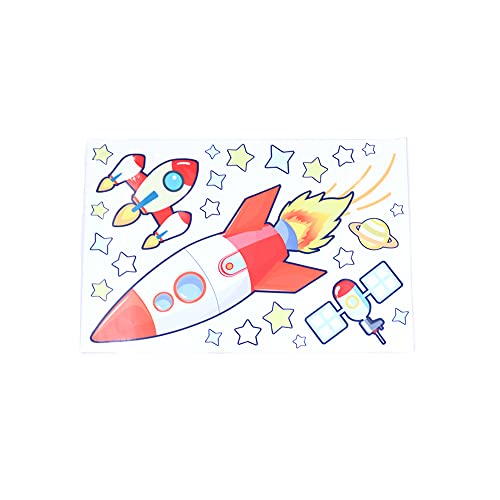 ANCLLO 5pcs adesivi murali colorati razzo spaziale esterno, adesivi murali pianeti razzi luminosi fluorescenti, adesivi murali luminosi fluorescenti per la decorazione #1