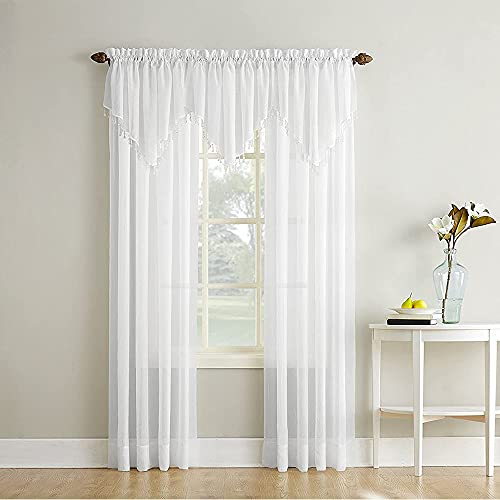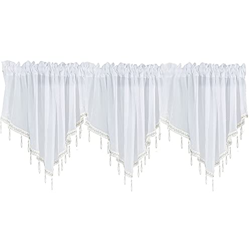 ANCLLO Mantovana con 3 pannelli, in voile trasparente, con motivo a righe, 130 x 60 cm, colore: Bianco