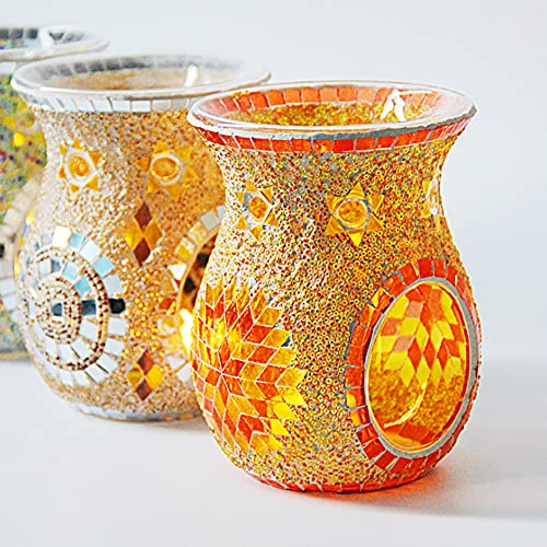 ANCLLO - Portacandele in vetro a mosaico, stile etnico con fiore di sole, centrotavola per la decorazione della casa o per matrimoni (arancione)